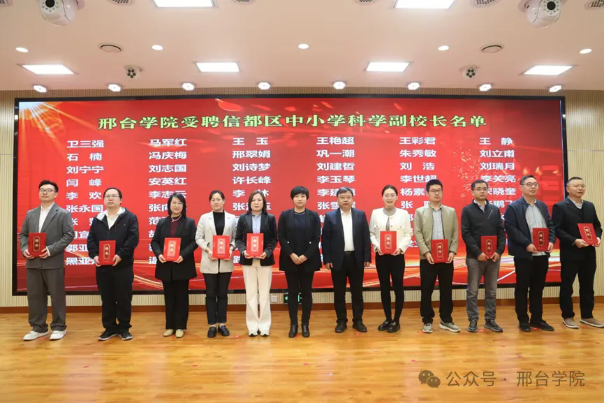 在双方领导和嘉宾的共同见证下,王自力、刘建功代表双方签署教育协作联合体共建战略合作协议,并依序举行了信都区科普实践教育示范基地授牌仪式、科学副校长聘用仪式。本次聘用采用双向聘用方式,58名邢台学院博士、教授将利用自身专业优势和资源,为中小学提供专业指导与帮助。同时,58所中小学校领导将利用自身丰富实践经验,为邢台学院人才培养提供实践指导,推动师范生教育理论与实践互补共长。