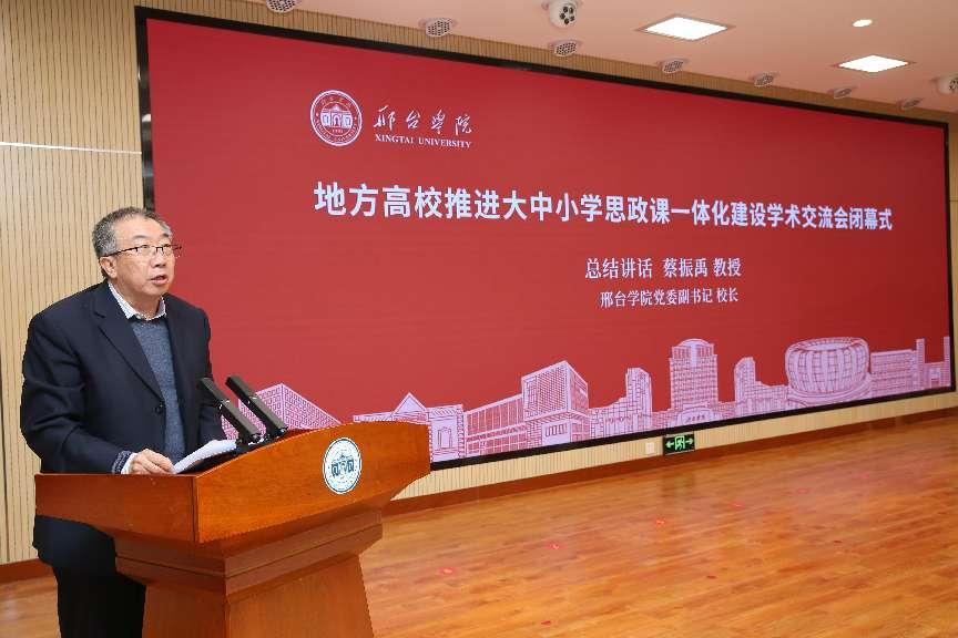 闭幕式上,河北经贸大学马克思主义学院副书记刘志峰 、烟台大学马克思主义学院副书记杜德省、衡水学院马克思主义学院副院长陈如智代表三个研讨小组作了交流发言。邢台学院校长蔡振禹作了总结发言。