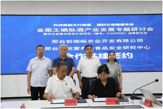 8月6日,由我校化学工程与生物技术学院、科研处主办的硒肽酒产业发展专题研讨会暨河北省重点研发计划项目成果转化会在我校创新创业中心102会议室召开。中国发展战略学研究会经济委员会规划部主任、河北养生行业协会副会长朱振岭,京津冀绿色产业创新战略联盟副主席李春,河北省科技型中小企业协会知识产权专委会秘书长赵灏,河北省电子商务协会副秘书长易平均,前南峪党委书记郭天林,邢台市信都区林业局副局长靳智昌、邢台市电子商务协会会长、民建邢台市委副秘书长高鹏等参加研讨会。我校校长助理、化学工程与生物技术学院院长赵宝华,科研处处长董丽丽,化学工程与生物技术学院骨干教师参加研讨会。